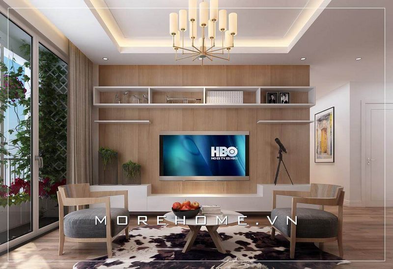 Trang trí nội thất phòng khách chung cư hiện đại độc đáo với gỗ ốp tường trang trí