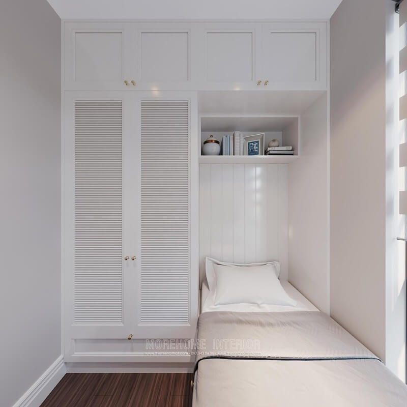 Nội thất phòng ngủ gỗ công nghiệp nhẹ nhàng, đơn giản cùng tone màu trắng chủ đạo là sự lựa chọn thú vị cho không gian nhà phố nhỏ