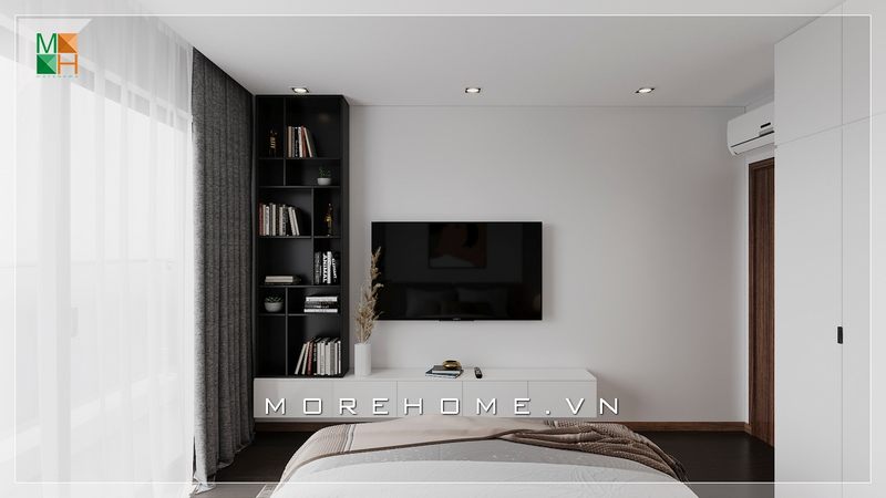Kệ tivi gỗ công nghiệp kết hợp giá sách hiện đại phù hợp với diện tích căn phòng ngủ