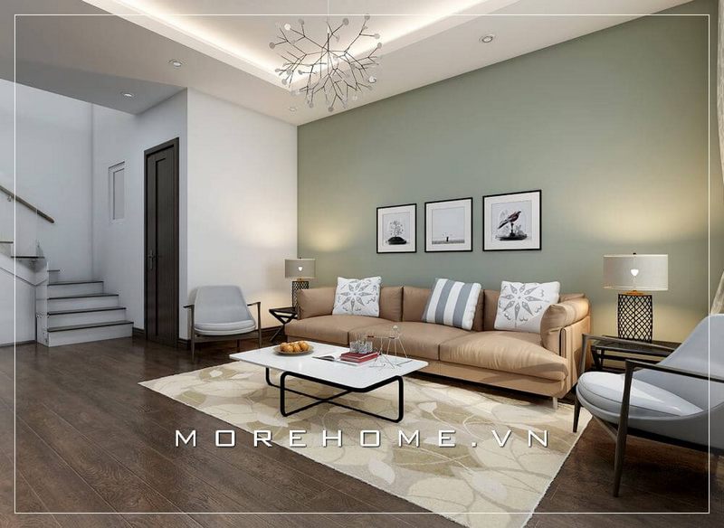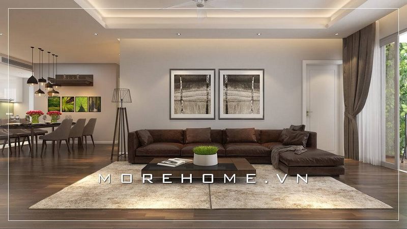 Nội thất sofa phòng khách màu nâu hiện đại tạo điểm nhấn trẻ trung cho không gian nhà chung cư