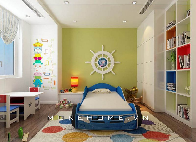 Mẫu kệ sách gỗ công nghiệp hiện đại cho phòng ngủ của bé