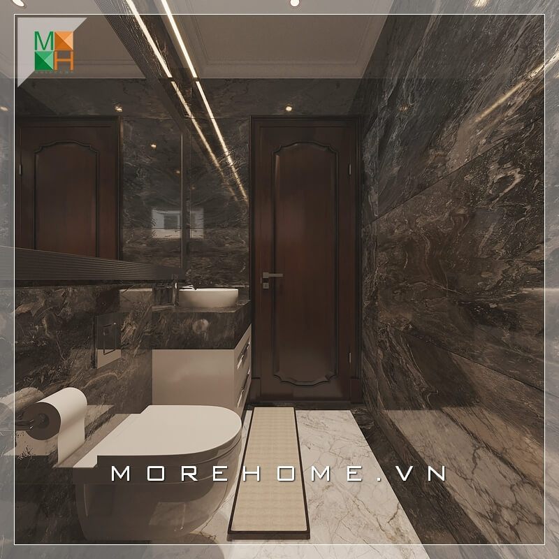 Mẫu kệ tủ lavabo gỗ công nghiệp với mặt tủ ốp đá tự nhiên cao cấp