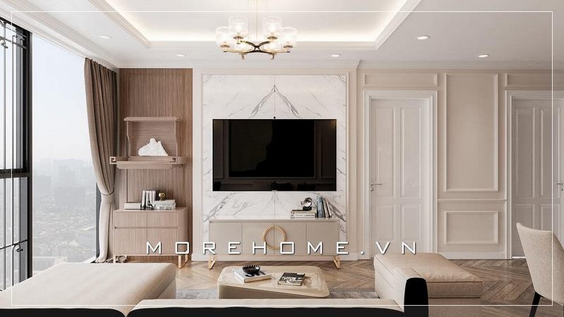 . Mẫu cửa gỗ cao cấp được thiết kế theo phong cách tân cổ điển nhẹ nhàng, góp phần tạo nên sự thanh lịch và hút hồn cho căn phòng.