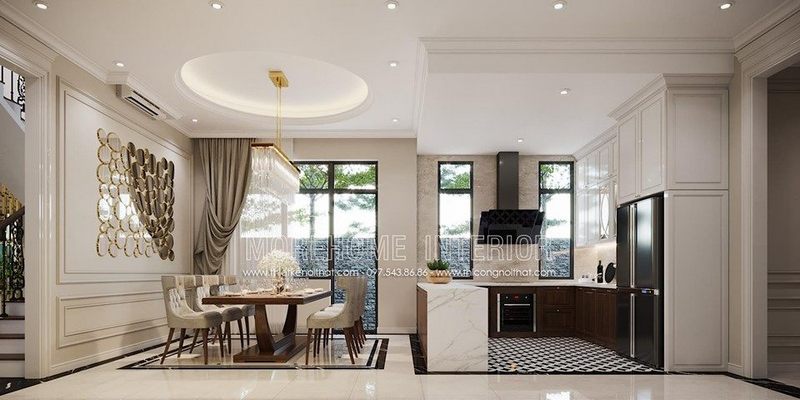 Việc trang trí không gian phòng ăn liền bếp nhà phố sẽ tạo ra một không gian thông thoáng, giúp tạo nên một môi trường gắn kết tình cảm giữa các thành viên trong gia đình.