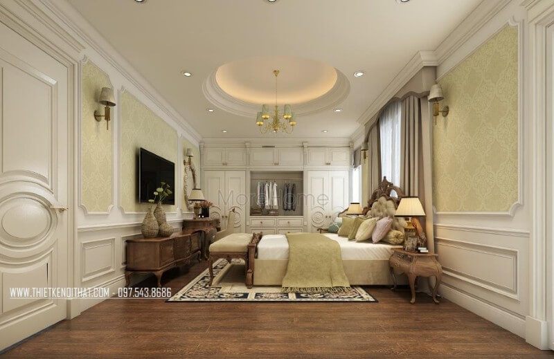 Để tạo nên hình ảnh tân cổ điển trong thiết kế chung cư cao cấp, giấy dán tường họa tiết tân cổ điển đã được lựa chọn sử dụng.